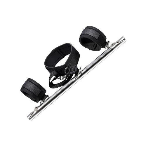 Coleira com par de algemas em nylon com barra de restrição em aço inoxidável.